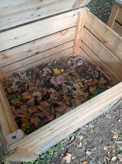 Učenci 3.b so zbirali listje v šolskem sadovnjaku . Kompostnika bosta kmalu polna..